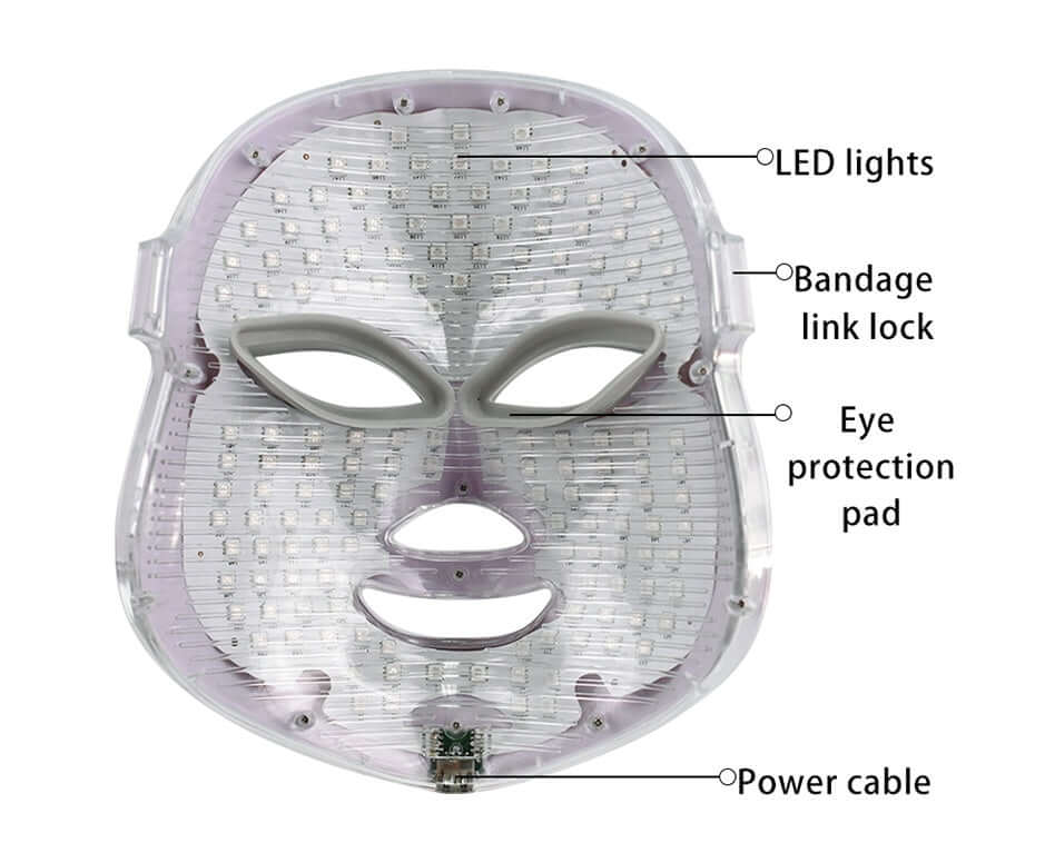 Red light (630nm): bleaches blemishes, smoothes anti-wrinkle skin, repairs damaged skin, smoothes fine lines, reduces pores and increases collagen proliferation.